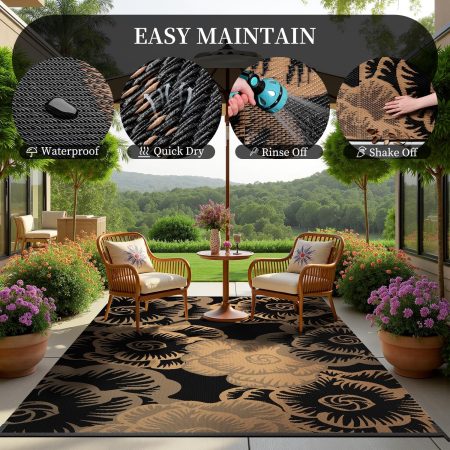 Easy To Clean: outdoor rug is tightly woven, waterproof, and stain-resistant; simply clean by rinsing with water or wiping with a damp cloth; the plastic patio rug air dries quickly outdoors, ensuring a fresh and clean rug in no time