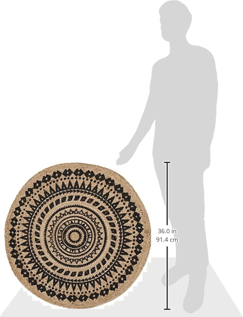 Area Rug – 3′ Round, Black & l, Handmade Boho Mandala Braided Jute, Ideal for High Traffic Areas in Living Room, Bedroom