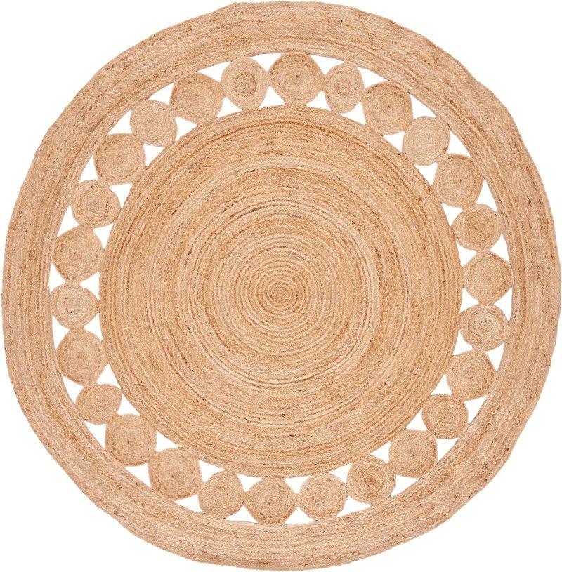 Area Rug – 3′ Round, l, Handmade Boho Charm Farmhouse Jute, Ideal for High Traffic Areas in Living Room, Bedroom