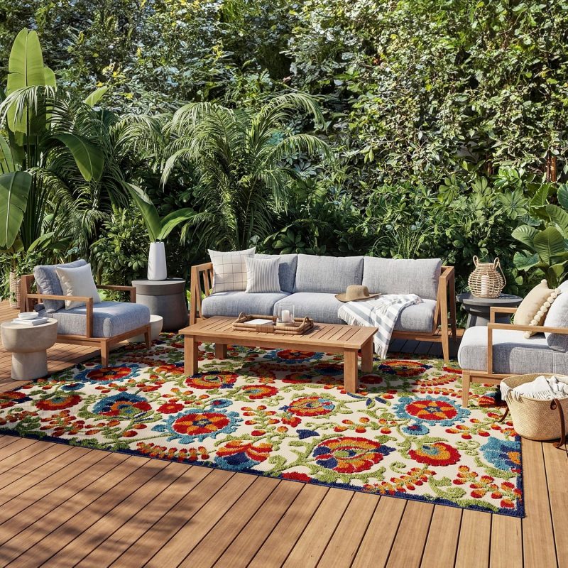 Home Outdoor Rugs Home Indoor/Outdoor Multicolor 6′ x 9′ Area Rug, Easy Cleaning, Non Shedding, Bed Room, Living Room, Dining Room, Backyard, Deck, Patio (6×9)