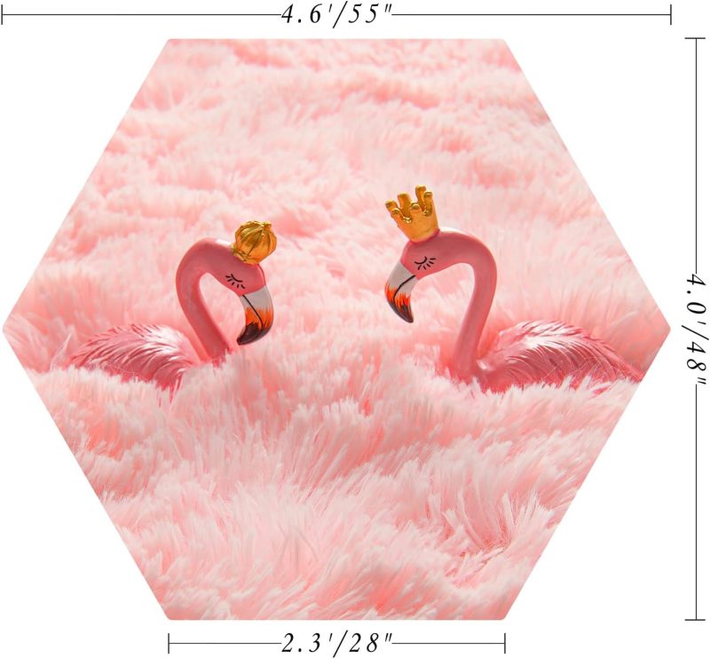 Pink Hexagon Rug for Princess Tent, Fluffy Area Rug for Kids Room, 4×4.6 Feet for Girls Tent, Furry Soft Nursery Rug, Fuzzy Plush Carpet for Teen Girls Bedroom
