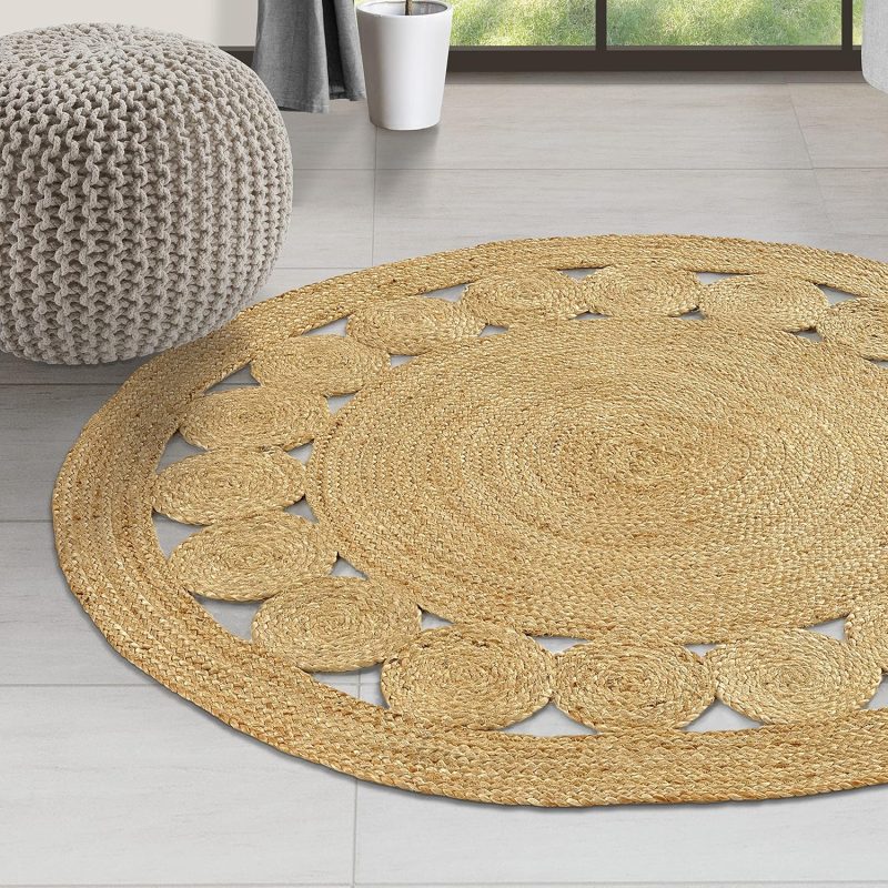 • ROUND JUTE RUG-These 3 ft (3x3ft) Natural Round Area Rugs are handcrafted by artisan rug makers from 100% natural premium Jute that is elegant and feels soft on bare feet. With its round design, this rug is a perfect way to add balance to a room or incorporate a softer element into an interior design. Embracing the warm, natural colors of jute this rug is very versatile and will suit a variety of home styles.