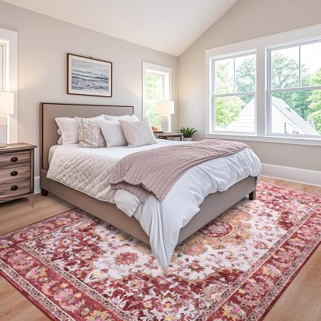 Machine Washable: Designed with convenience in mind, this bedroom rug is machine washable, allowing for easy cleaning and maintenance. Also for daily cleaning with vacuum cleaner, broom, or wipe. Easily to keep a new looking